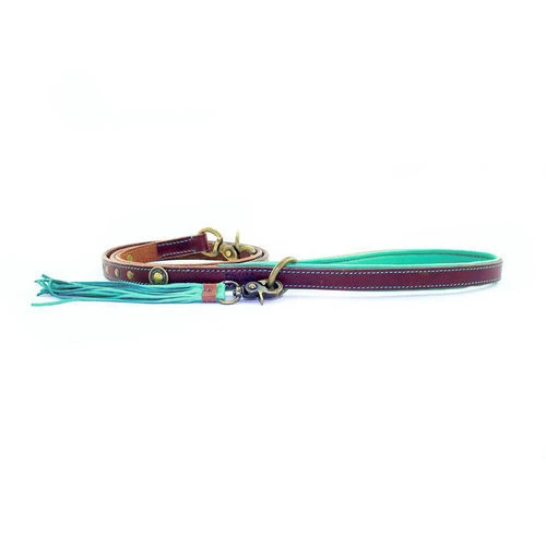 Geschmeidige und weiche Lederleine. Die Leine ist mit schönen Kupferdetails verziert. Zusätzlich wurde ein abnehmbarer Anhänger mit Fransen hinzugefügt. Der alte „gebrauchte“ Look ist Teil des Aussehens von Dog with a Mission!