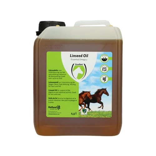 Excellent Leinöl für Pferde besteht aus 100% kaltgepresstem Leinsamen. Es enthält einen hohen Anteil an essentiellen Omega-3-Fettsäuren. Dies unterstützt die optimale Darmfunktion und eine gesunde Verdauung. Es unterstützt auch die Haut und das Fell.