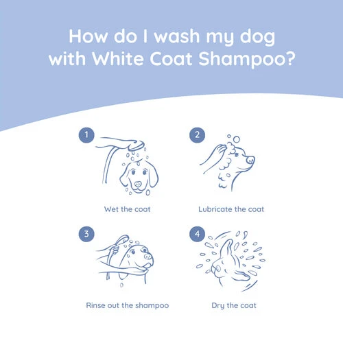 - Spezialshampoo für Hunde mit weißem oder hellem Fell zur Verstärkung der natürlichen Fellfarbe