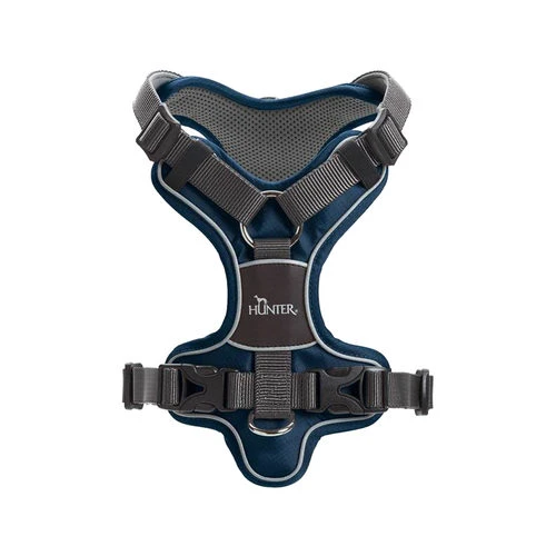 Hunter Harness Divo Dark Blue/Grey ist ein komfortables Hundegeschirr mit Leuchtstreifen und ergonomischer Passform.