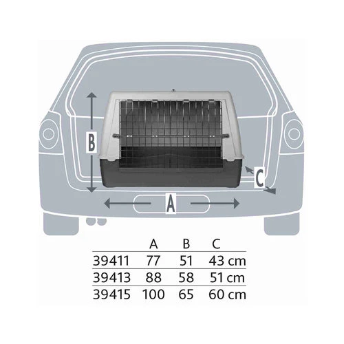 Die Trixie Transportbox Journey ist eine praktische Hundebox für den Einsatz im Auto. Durch die abgeschrägten Wände der Transportkiste wird der Kofferraum optimal genutzt. Die Box von Trixie hat mehrere Luftlöcher für eine optimale Belüftung. Die Tür besteht aus Metall und kann hochgeklappt werden.